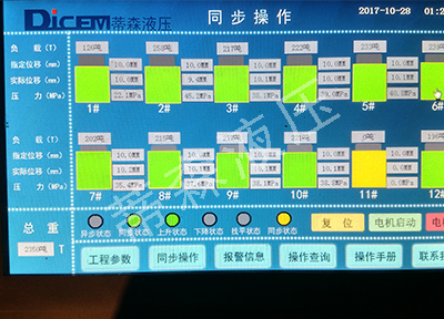 西溪大橋,位于福建省漳州市龍海市橫跨九龍江,是福建省道漳云線和國(guó)道324線的連接段,該大橋全長(zhǎng)2820米,于03年開(kāi)始動(dòng)工修建。由于該大橋每日車流量大,修建時(shí)間之長(zhǎng),所處的水文環(huán)境特殊,于2017年10月間,保障交通大通暢,對(duì)大橋?qū)嵤﹩蜗蝈e(cuò)開(kāi)封閉,進(jìn)行橋梁加固和路面檢修作業(yè)和橋梁頂升應(yīng)力釋放,原計(jì)劃分別對(duì)14號(hào)、17號(hào)橋墩進(jìn)行單次同步頂升作業(yè)。福建路橋集團(tuán)在反復(fù)的勘測(cè)和檢測(cè)后,確定需要對(duì)九龍江中心處150米標(biāo)段的橋面同步整體提升10mm懸空。由于14號(hào)和17號(hào)橋墩所處九龍江江中,水文環(huán)境變化大,白晝潮汐變化大,對(duì)橋墩應(yīng)力釋放有著苛刻的溫度把控要求,戶外溫度必須在18度左右。由于兩個(gè)橋墩之間跨度達(dá)到150米。原來(lái)的8點(diǎn)位的PLC同步頂升系統(tǒng)點(diǎn)數(shù)和油管及數(shù)傳信號(hào)線長(zhǎng)度無(wú)法滿足現(xiàn)有的要求。在更換設(shè)備后。用12點(diǎn)位的PLC同步頂升系統(tǒng)替換原來(lái)的8點(diǎn)位PLC系統(tǒng),液壓千斤頂數(shù)量從原來(lái)的10臺(tái),增加到目前的22臺(tái)。油路及管線的布置,采用6點(diǎn)位分布,每個(gè)點(diǎn)位并聯(lián)兩至三個(gè)千斤頂達(dá)到承重均布。一個(gè)點(diǎn)位由一個(gè)脈沖位移傳感器進(jìn)行檢測(cè)。經(jīng)過(guò)一系列的準(zhǔn)備和調(diào)試工作,頂升作業(yè)于10月28日晚,凌晨一點(diǎn),對(duì)14號(hào)和17號(hào)橋墩進(jìn)行橋梁同步提升作業(yè)。隨著各單位的協(xié)調(diào)配合,頂升作業(yè)進(jìn)行了半個(gè)小時(shí)就完成了,橋墩應(yīng)力釋放。整過(guò)頂升作業(yè)過(guò)程進(jìn)展順利,各項(xiàng)技術(shù)參數(shù)達(dá)到預(yù)期要求。