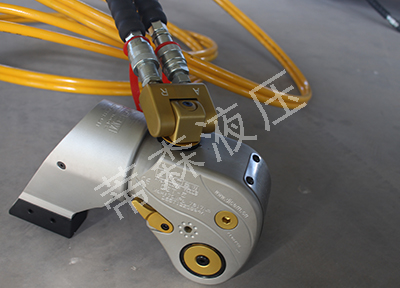 液壓扳手是液壓力矩扳手(hydraulic torque wrench)簡(jiǎn)稱。是以液壓為動(dòng)力,提供大扭矩輸出,用于螺栓的安裝及拆卸的專業(yè)螺栓上緊工具,經(jīng)常用來上緊和拆松大于一英寸的螺栓。液壓扭力扳手是由工作頭、液壓泵以及高壓油管組成。通過高壓油管,液壓泵將動(dòng)力傳輸?shù)焦ぷ黝^,驅(qū)動(dòng)工作頭旋轉(zhuǎn)螺母的擰緊或松開。液壓泵可以由電力或壓縮空氣驅(qū)動(dòng)。液壓扳手的工作頭主要由三部分組成,框架(也叫殼體),油缸和傳動(dòng)部件。油缸輸出力,油缸活塞桿與傳動(dòng)部分組成運(yùn)動(dòng)副,油缸中心到傳動(dòng)部件中心這個(gè)距離是液壓扳手放大力臂,油缸出力乘以力臂,就是液壓扳手理論輸出扭矩,由于摩擦阻力存在,液壓扳手實(shí)際輸出扭矩要小于理論輸出扭矩。