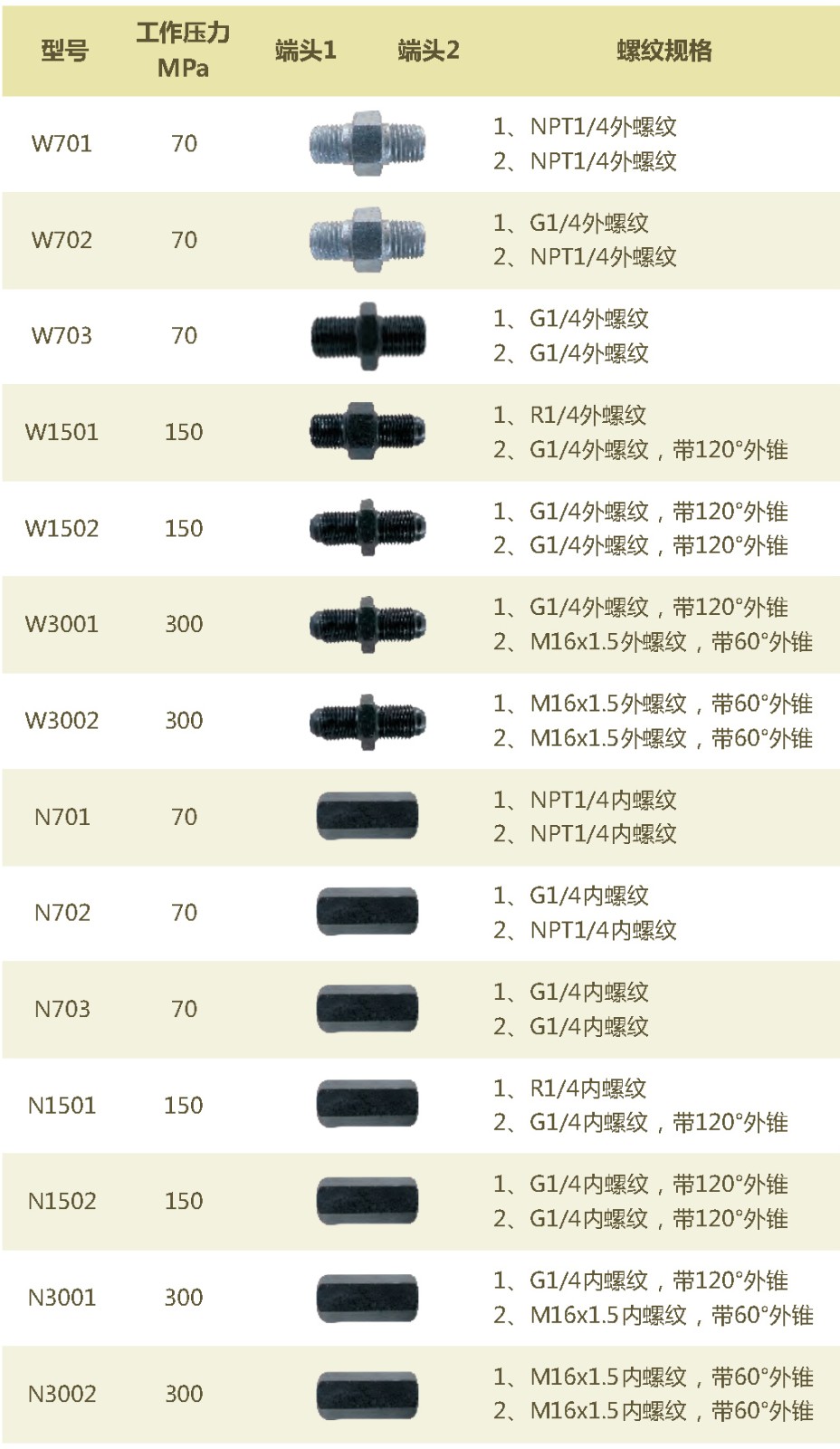 W/N系列過渡轉(zhuǎn)換接頭選型表