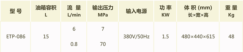 ETP液壓泵站選型表