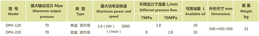 DPH汽油發(fā)動(dòng)機(jī)液壓泵站選型表